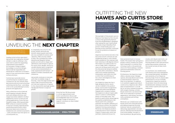 In conclusion , our collaboration with Hawes and Curtis exemplifies the unmatched quality , durability , and versatility of our Impervia flooring range . From its impeccable performance to its eco-friendly composition , Impervia stands as the premier choice for discerning establishments seeking to elevate their interior spaces with style and substance .