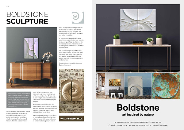 Boldstone Sculpture designs and makes original art working with interior and garden designers, architects, property developers and private clients. We work on large and small scale projects including individually created commissions.