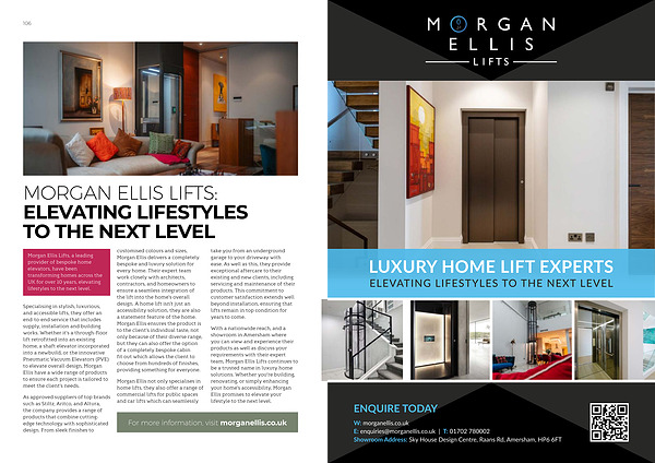 With a nationwide reach, and a showroom in Amersham where you can view and experience their products as well as discuss your requirements with their expert team, Morgan Ellis Lifts continues to be a trusted name in luxury home solutions. Whether you’ re building, renovating, or simply enhancing your home’ s accessibility, Morgan Ellis promises to elevate your lifestyle to the next level.