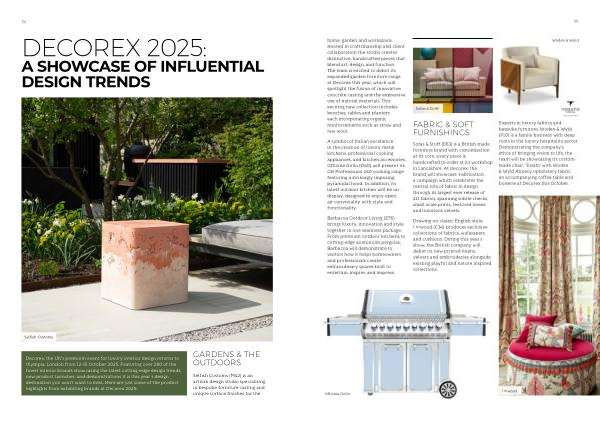 35 home, garden and workspace. Rooted in craftsmanship and client collaboration the studio creates distinctive, handcrafted pieces that blend art, design, and function. The team is excited to debut its expanded garden furniture range at Decorex this year, which will spotlight the fusion of innovative concrete casting and the expressive use of natural materials. This exciting new collection includes benches, tables and planters each incorporating organic reinforcements such as straw and raw wool.