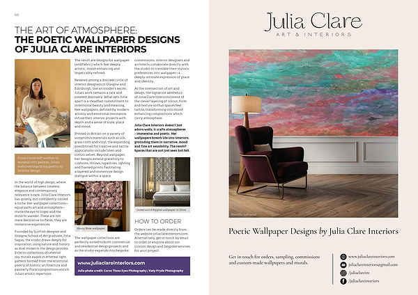 Get in touch for orders, sampling, commissions and custom-made wallpapers and murals. www. juliaclareinteriors. com juliaclareinteriors @ gmail. com / juliaclareint / juliaclareinteriors