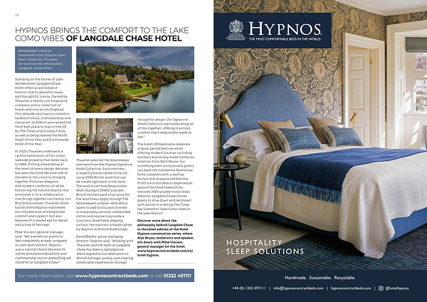 David Baldry, group managing director, Hypnos, said,“ Working with Thwaites and the team at Langdale Chase has been a real pleasure. We’ re aligned in our dedication to British heritage, quality, and creating memorable experiences through thoughtful design. Our Signature Hotel Collection mattresses bring all of this together, offering luxurious comfort that’ s responsibly made to last.”