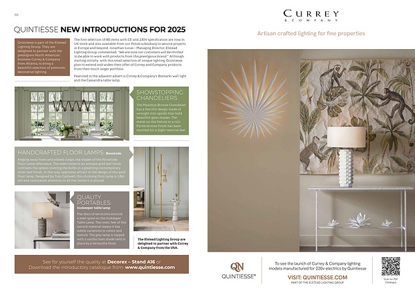 To see the launch of Currey & Company lighting models manufactured for 230v electrics by Quintiesse