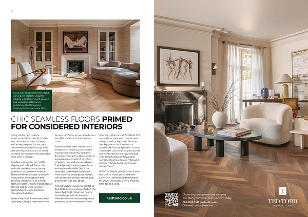 Robert Walsh, founder and CEO of Ted Todd Group, commented on the latest Ted Todd collection“ We’ re incredibly proud of our latest Residence collection adding to our portfolio of now eleven different flooring collections at Ted Todd. The innovation, style and commitment to high-quality, high-end flooring has kept us at the forefront of hardwood flooring specialists as our client base continues to grow across the world. We have a very exciting year ahead and look forward to working closely with our retail and commercial partners to continue this success.”
