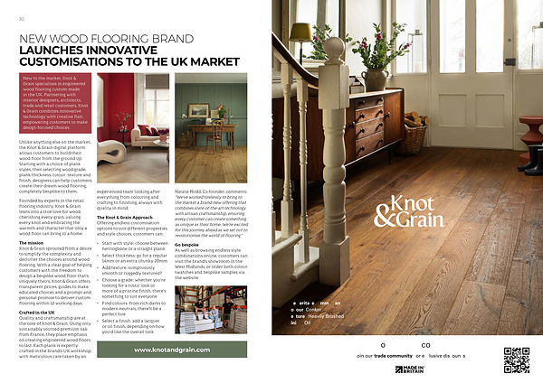 New to the market, Knot & Grain specialises in engineered wood flooring custom-made in the UK. Partnering with interior designers, architects, trade and retail customers, Knot & Grain combines innovative technology with creative flair, empowering customers to make design-focused choices.
