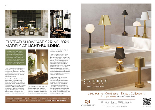 To see our New Quintiesse & Elstead Collections VISIT: Light + Building- Hall: 6.0 Stand: BO1