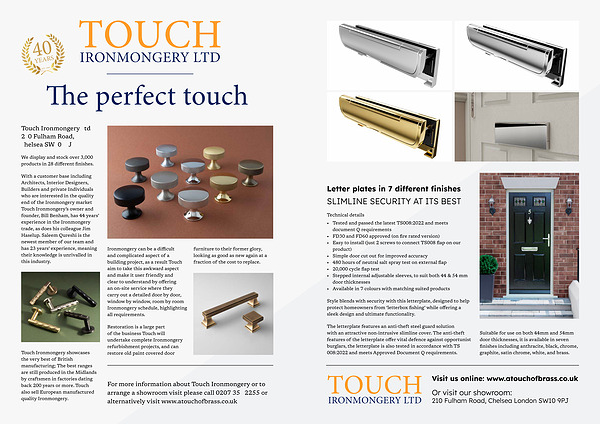 For more information about Touch Ironmongery or to arrange a showroom visit please call 0207 351 2255 or alternatively visit www. atouchofbrass. co. uk