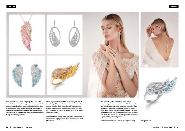 Each piece features the double wing design of one laid over the “The earrings in particular are statement pieces,” says Claire Scott,
