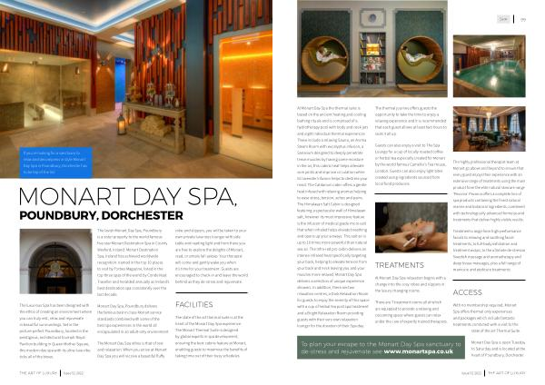 The lavish Monart Day Spa , Poundbury is a sister property to the world-famous five-star Monart Destination Spa in County Wexford , Ireland . Monart Destination Spa , Ireland has achieved worldwide recognition : named in the top 10 places to visit by Forbes Magazine , listed in the top three spas of the world by Conde Nast Traveller and heralded annually as Ireland ’ s best destination spa consistently over the last decade .