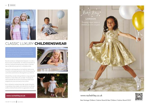 Rachel Riley is a British award-winning children ’ s clothing brand . We design classic luxury childrenswear & are best known for our quality & style , with prints designed in-house , traditional craftsmanship including hand embroidery , hand smocked & use of fine soft fabrics .