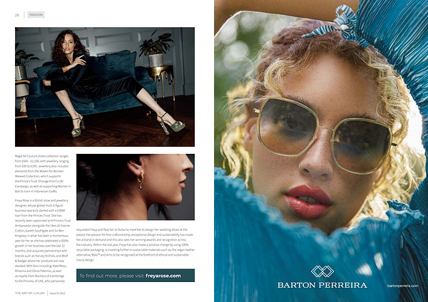 Freya Rose is a British shoe and jewellery designer , whose global multi-6 figure business was kick-started with a £ 3000 loan from the Princes Trust . She has recently been appointed as A Prince ’ s Trust Ambassador alongside the likes of ; Fearne Cotton , Gareth Southgate and Sir Ben Kingsley , in what has been a momentous year for her as she has celebrated a 500 % growth in her business over the last 12 months , and acquired partnerships with brands such as Harvey Nichols , and Wolf & Badger where her products are now stocked . With fans including ; Kate Moss , Rihanna and Olivia Palermo , as well as royalty from Duchess of Cambridge to the Princess of UAE , who personally requested Freya and flew her to Dubai to meet her to design her wedding shoes at the palace ; her passion for fine craftsmanship , exceptional design and sustainability has made her a brand in demand and this also sees her winning awards and recognition across the industry . Within the last year , Freya has also made a positive change by using 100 % recyclable packaging , is investing further in sustainable materials such as ; the vegan leather alternative , Mylo™ and aims to be recognised at the forefront of ethical and sustainable luxury design .