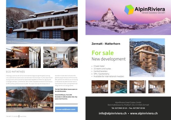 AlpinRiviera Great Estates GmbH Steinmattstrasse 52 , Postfach 153 , CH-3920 Zermatt