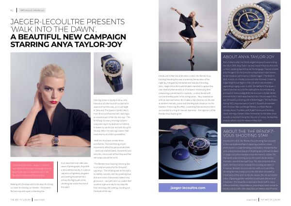 JAEGER-LECOULTRE PRESENTS ‘ WALK INTO THE DAWN ’, A BEAUTIFUL NEW CAMPAIGN STARRING ANYA TAYLOR-JOY