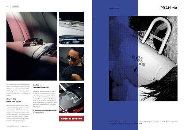 The AMG 11 was modelled on the AMG 02 and AMG 05 models . Expressiveness and a clear design language also characterise these sunglasses . A special highlight is the colour accent above the upper bridge . The model is available in the colours Gun Metal / Acid Yellow , Black / Venice and Aubergine / AMG Orange .