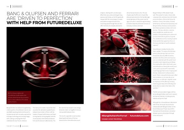 B & O ’ s in-house creative and FutureDeluxe visually explore the alchemy when the two luxury brands fuse in a new collection of hi-octane audio products .