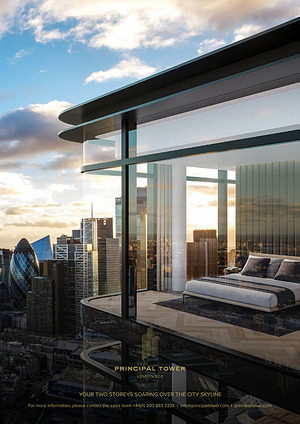 YOUR TWO STOREYS SOARING OVER THE CITY SKYLINE For more information , please contact the sales team + 44 ( 0 ) 203 883 3333 I info @ principaltower . com I principaltower . com
