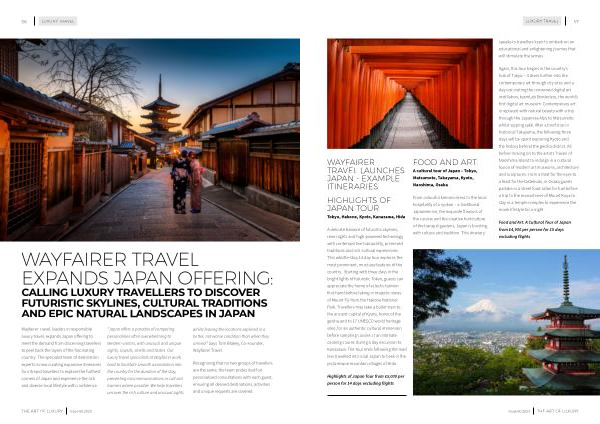 WAYFAIRER TRAVEL LAUNCHES JAPAN - EXAMPLE ITINERARIES