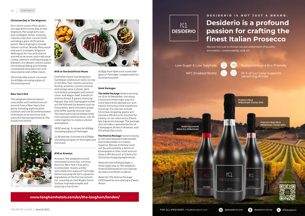 The WOW Package : Guests arriving on 23 or 24 December , can enjoy a luxurious three-night stay in a room beautifully decked-out with Liberty Christmas Tree and festive stockings . For any last-minute Christmas shopping , guests will receive a 15 % discount voucher for Liberty , or can relax with a Chaun Spa Signature massage . The package also includes a welcome bottle of Champagne , drinks in Artesian , and Christmas Day lunch .