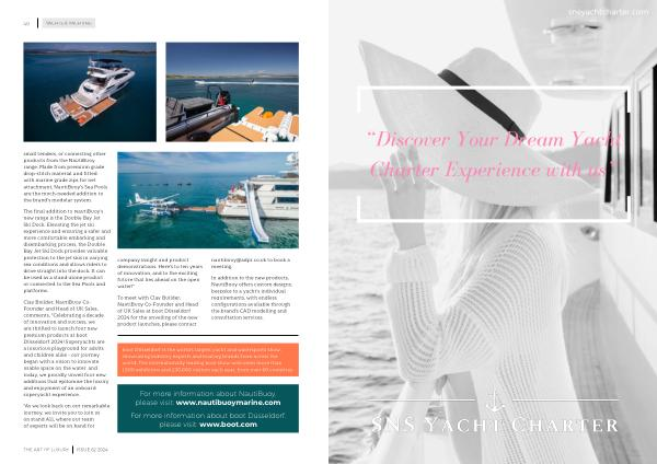 Clay Builder , NautiBuoy Co- Founder and Head of UK Sales , comments , “ Celebrating a decade of innovation and success , we are thrilled to launch four new premium products at boot Düsseldorf 2024 ! Superyachts are a luxurious playground for adults and children alike - our journey began with a vision to innovate usable space on the water , and today , we proudly unveil four new additions that epitomise the luxury and enjoyment of an onboard superyacht experience .