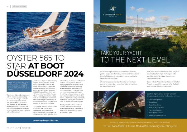 The Oyster 565 will be available to view at the boot Düsseldorf and those interested in booking a viewing , or attending the Oyster World Rally talks www . oysteryachts . com