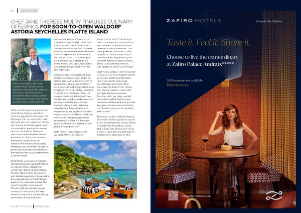 CHEF JANE-THERESE MULRY FINALISES CULINARY OFFERINGS FOR SOON-TO-OPEN WALDORF ASTORIA SEYCHELLES PLATTE ISLAND