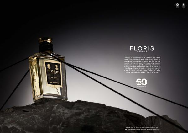 Created in celebration of 60 years of the James Bond film franchise , the perfumery team at Floris have created the exclusive No . 007 Eau de Parfum . A rich and spicy fragrance with amber at its base , this captivating scent is a blend of refreshing citrus and juniper notes set against a subtly smoky accord with flashes of spicy dianthus carnation and an aromatic heart .