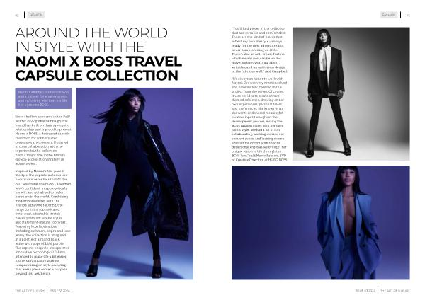 Since she first appeared in the Fall / Winter 2022 global campaign , the brand has built on their synergetic relationship and is proud to present Naomi x BOSS , a dedicated capsule collection for sophisticated , contemporary travelers . Designed in close collaboration with the supermodel , the collection plays a major role in the brand ’ s growth-acceleration strategy in womenswear .