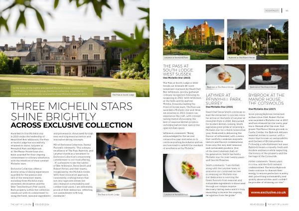 The Pass at South Lodge in West Sussex , an intimate 28-cover restaurant overseen by Head Chef Ben Wilkinson , quickly gathered culinary recognition following its reopening in 2022 . With Wilkinson at the helm and his partner Monika Zurawska leading the front-of-house team , The Pass was awarded a Michelin star and three AA Rosettes in 2023 . Guests can experience the craft , with curated tasting menus showcasing the best of seasonal British produce unfolding before their eyes at the open kitchen space .