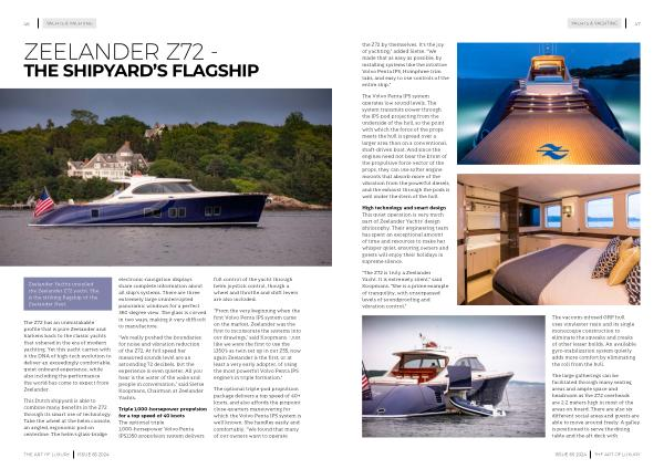 “ The Z72 is truly a Zeelander Yacht . It is extremely silent ,” said Koopmans . “ She is a prime example of tranquility , with unsurpassed levels of soundproofing and vibration control .”