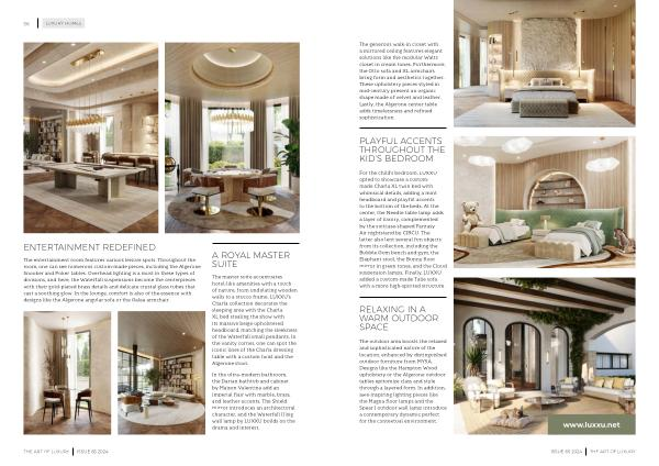The outdoor area boosts the relaxed and sophisticated nature of the location , enhanced by distinguished outdoor furniture from MYSA . Designs like the Hampton Wood upholstery or the Algerone outdoor tables epitomize class and style through a layered form . In addition , awe-inspiring lighting pieces like the Magna floor lamps and the Spear I outdoor wall lamp introduce a contemporary dynamic perfect for the contextual environment . www . luxxu . net