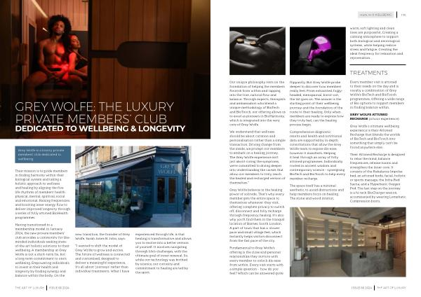 Having transitioned to a membership model in January 2024 , the new private members ’ club provides a community for likeminded individuals seeking stateof-the-art holistic solutions to their wellbeing . A membership at Grey Wolfe is not a short-term fix , but a long-term commitment to one ’ s wellbeing . Empowering individuals to invest in their health and longevity by finding synergy and balance within the body . On the new transition , the founder of Grey Wolfe , Sarah Jones St John , says :