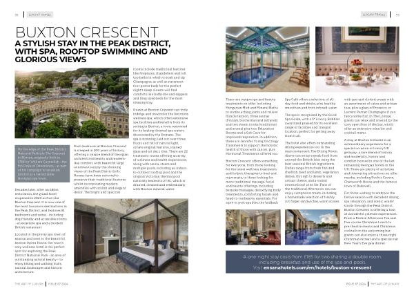 A stay at Buxton Crescent is an extraordinary experience for a special occasion or luxury UK getaway ; a rare blend of history and modernity , luxury and comfort housed in one of the last remaining Georgian hotels in the UK . There are plenty of activities and interesting attractions on offer nearby , including Poole ’ s Cavern , Chatsworth House and the famous town of Bakewell .