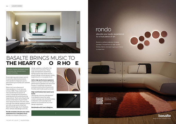 Music isn ’ t just a feature of their products — it ’ s at the core of their DNA . They understand the transformative power of music in shaping environments , evoking emotions and enhancing experiences . That ’ s why they bring music to the heart of your home . Your favourite music fills the room through their design speakers which are only a tap away using their Basalte Home app , touch displays , Miro remote and design controls .