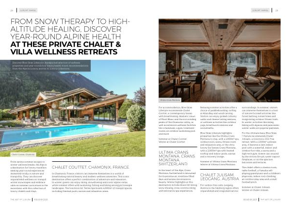 For the ultimate base , Blue Skies Lifestyle recommends Chalet Julisam — a luxurious , CO2-free retreat . With a 1,000m ² wellness area , it features a 14m indoor pool with a waterfall , indoor and outdoor hot tubs , a sauna and a high-tech gym . Guests can unwind by the atrium fire pit , water vapour fireplaces , or on the spacious balconies and terraces .