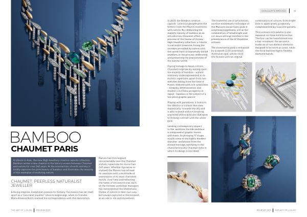 In 2025 , the Bamboo creative capsule collection perpetuates the historic links the Maison maintains with nature . By celebrating the majestic beauty of bamboo as an introduction , Chaumet offers a preview of the theme of its new High Jewellery collection : a tribute to naturalist treasures , fusing the wonders provided by nature with the savoir-faire of supremely skilled jewellers , in the process celebrating and preserving the preciousness of the natural world .