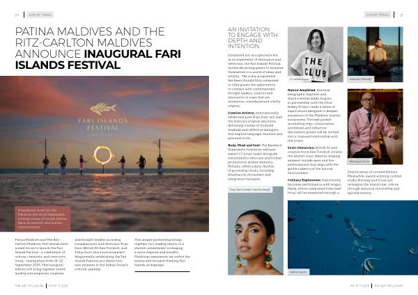 Patina Maldives and The Ritz- Carlton Maldives, Fari Islands have joined forces to launch the Fari Islands Festival- a celebration of culture, creativity, and conscious living – taking place from 19-22 September 2025. This inaugural edition will bring together worldleading contemporary creatives and thought leaders including Canadian poet and illustrator Rupi Kaur, British DJ Kim Turnbull, and Tokyo-born fine food movement Wagyumafia, establishing the Fari Islands Festival as a distinctive new moment in the Indian Ocean’ s cultural calendar.