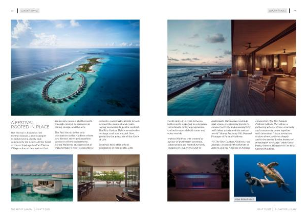The Fari Islands is the only destination in the Maldives where two distinct resort philosophies coexist in effortless harmony. Patina Maldives, an expression of transformative luxury and artistic curiosity, encouraging guests to look beyond the moment and create lasting memories. In gentle contrast, The Ritz-Carlton Maldives embodies heritage, craft and natural flow, guided by the principle of the Circle of Life.