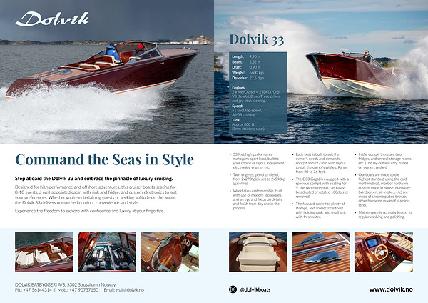 Step aboard the Dolvik 33 and embrace the pinnacle of luxury cruising.
