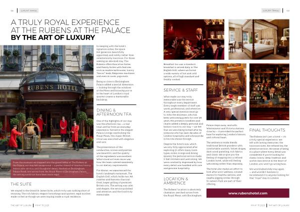 The Rubens isn’ t just a hotel— it’ s a truly special experience. We left with lasting memories: the luxurious suite, the refined tea, the attentive service, the sense of being in a place where every detail was considered. If you’ re looking for classic luxury, deep tradition and world-class service in the heart of London, you won’ t go wrong here.