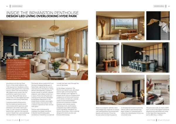 Commissioned by Almacantar, the five-bedroom penthouse is conceived as both sanctuary and statement. Accouter’ s brief was clear, to craft a space of enduring beauty that captures the seasonal tones of Hyde Park, while elevating the experience of urban living.