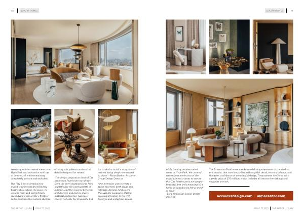 LUXURY HOMES 91 while framing uninterrupted views of Hyde Park. We curated pieces from a selection of the world’ s finest artisans to ensure that The Penthouse is not simply beautiful, but truly meaningful, a home designed to be felt as much as seen.”- Esra Kumbasar, Senior Design Director.