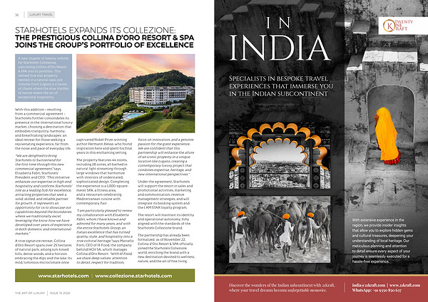 A new chapter of beauty unfolds for Starhotels Collezione, welcoming Collina d’ Oro Resort & SPA into its portfolio. This refined five-star property nestled in a natural oasis just minutes from Lugano is a haven of charm where the slow rhythm of nature meets the art of exceptional hospitality.