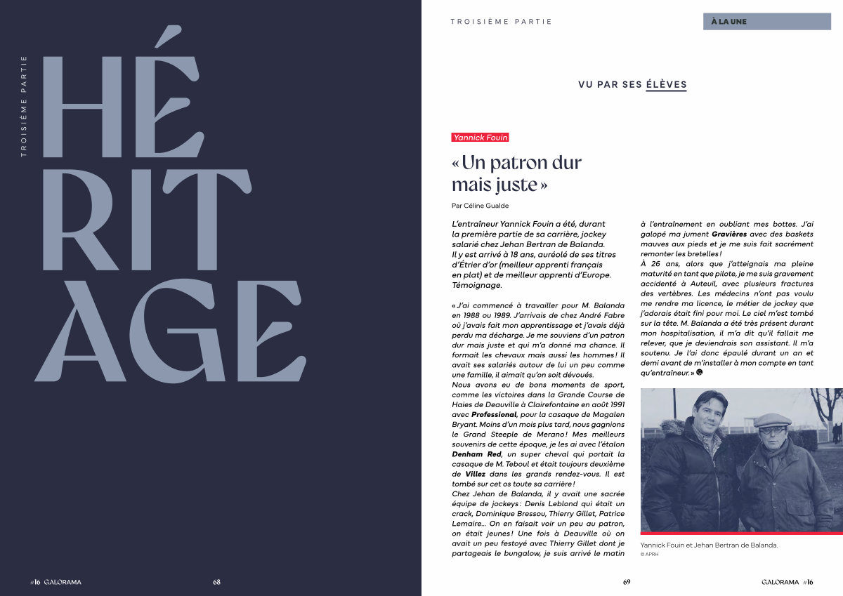 C. T. Le travail et la rigueur sont les principales raisons de cette montée en puissance. De la ferrure qui n'allait pas à un cheval à celui qu’il ne trouvait pas dans son assiette, il avait toujours ce regard. On en apprenait tous les jours avec lui. Sans rigueur, il n’y a pas de réussite. Dans cette rigueur, il nous a fait progresser et nous a fait apprendre plus vite les choses. M. de Balanda était toujours franc et direct. Mais une fois que c’était dit, c’était terminé.