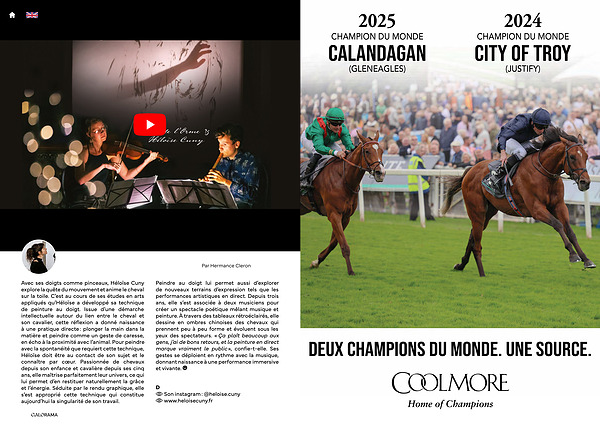 Avec ses doigts comme pinceaux, Héloïse Cuny explore la quête du mouvement et anime le cheval sur la toile. C’est au cours de ses études en arts appliqués qu’Héloïse a développé sa technique de peinture au doigt. Issue d’une démarche intellectuelle autour du lien entre le cheval et son cavalier, cette réflexion a donné naissance à une pratique directe: plonger la main dans la matière et peindre comme un geste de caresse, en écho à la proximité avec l’animal. Pour peindre avec la spontanéité que requiert cette technique, Héloïse doit être au contact de son sujet et le connaître par cœur. Passionnée de chevaux depuis son enfance et cavalière depuis ses cinq ans, elle maîtrise parfaitement leur univers, ce qui lui permet d’en restituer naturellement la grâce et l’énergie. Séduite par le rendu graphique, elle s’est approprié cette technique qui constitue aujourd’hui la singularité de son travail. Peindre au doigt lui permet aussi d’explorer de nouveaux terrains d’expression tels que les performances artistiques en direct. Depuis trois ans, elle s’est associée à deux musiciens pour créer un spectacle poétique mêlant musique et peinture. À travers des tableaux rétroéclairés, elle dessine en ombres chinoises des chevaux qui prennent peu à peu forme et évoluent sous les yeux des spectateurs. « Ça plaît beaucoup aux gens, j’ai de bons retours, et la peinture en direct marque vraiment le public », confie-t-elle. Ses gestes se déploient en rythme avec la musique, donnant naissance à une performance immersive et vivante.