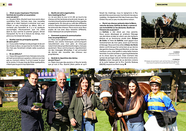 C. P. Callisto a été élevé par mes parents. Nous avons développé et amélioré l’ élevage ces dernières années en allant vers de meilleurs étalons et ça fonctionne plutôt bien. Éclipse de Cotte, la mère de Callisto, avait gagné sous l’ entraînement de mon père, avant qu’ il l’ envoie à l’ élevage. Nous sommes allés à Chœur du Nord, étalon confirmé que l’ on aime bien et qui donne des gentils chevaux. Édouard Monfort, un de mes meilleurs amis, s’ est greffé à cette belle histoire familiale. Il voulait acheter un yearling d’ obstacles et l’ a choisi dans les prés. C’ est vraiment très sympa de partager cela en famille et entre amis. Callisto a bien récupéré de sa dernière victoire et la suite logique est le Prix Camille Dubosq( 08 / 02), toujours au Pont-Long.