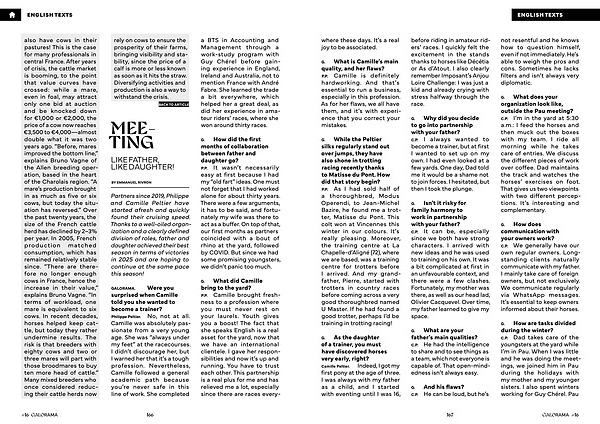 P. P. Camille brought freshness to a profession where you must never rest on your laurels. Youth gives you a boost! The fact that she speaks English is a real asset for the yard, now that we have an international clientele. I gave her responsibilities and now it’ s up and running. You have to trust each other. This partnership is a real plus for me and has relieved me a lot, especially since there are races every-