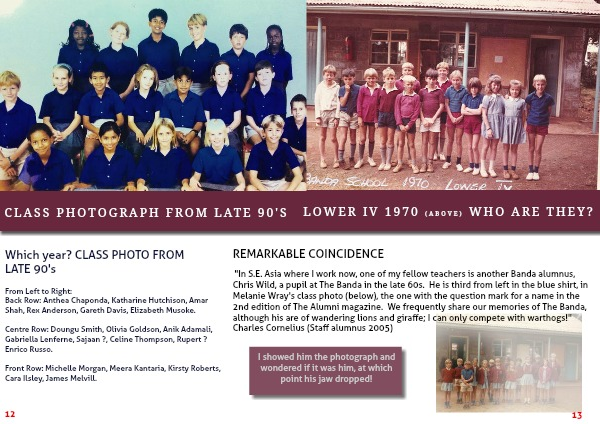 2nd edition of The Alumni magazine. We frequently share our memories of The Banda, although his are of wandering lions and giraffe; I can only compete with warthogs!" Charles Cornelius (Staff alumnus 2005)