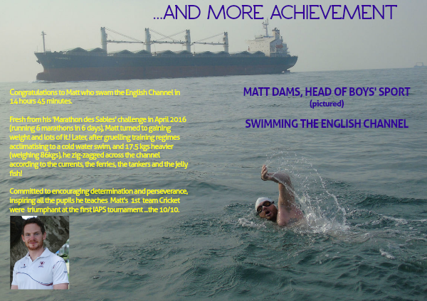 Congratulations to Matt who swam the English Channel in 14 hours 45 minutes.