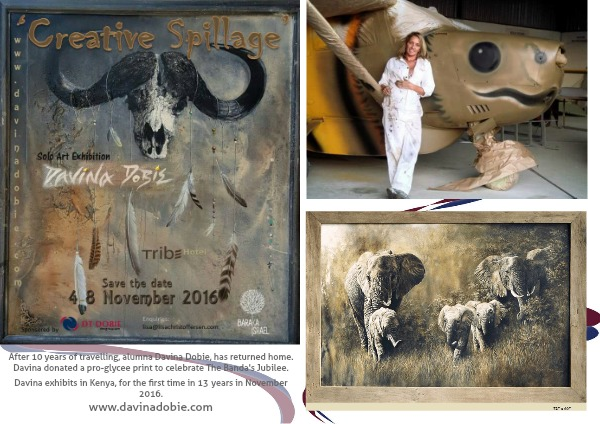 After 10 years of travelling, alumna Davina Dobie, has returned home. Davina donated a pro-glycee print to celebrate The Banda's Jubilee. Davina exhibits in Kenya, for the first time in 13 years in November 2016.