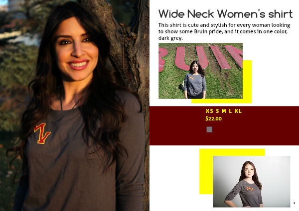 This shirt is cute and stylish for every woman looking to show some Bruin pride, and it comes in one color, dark grey.